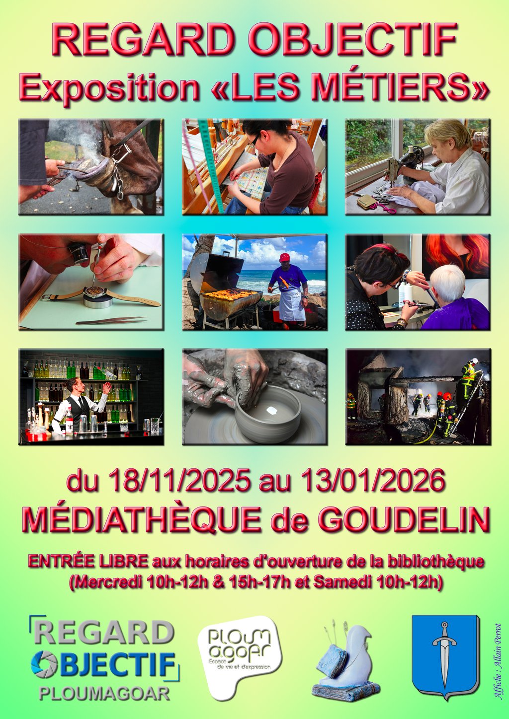 Exposition "Les Métiers" par regard Objectif de Ploumagoar à la Médiathèque de Goudelin.
