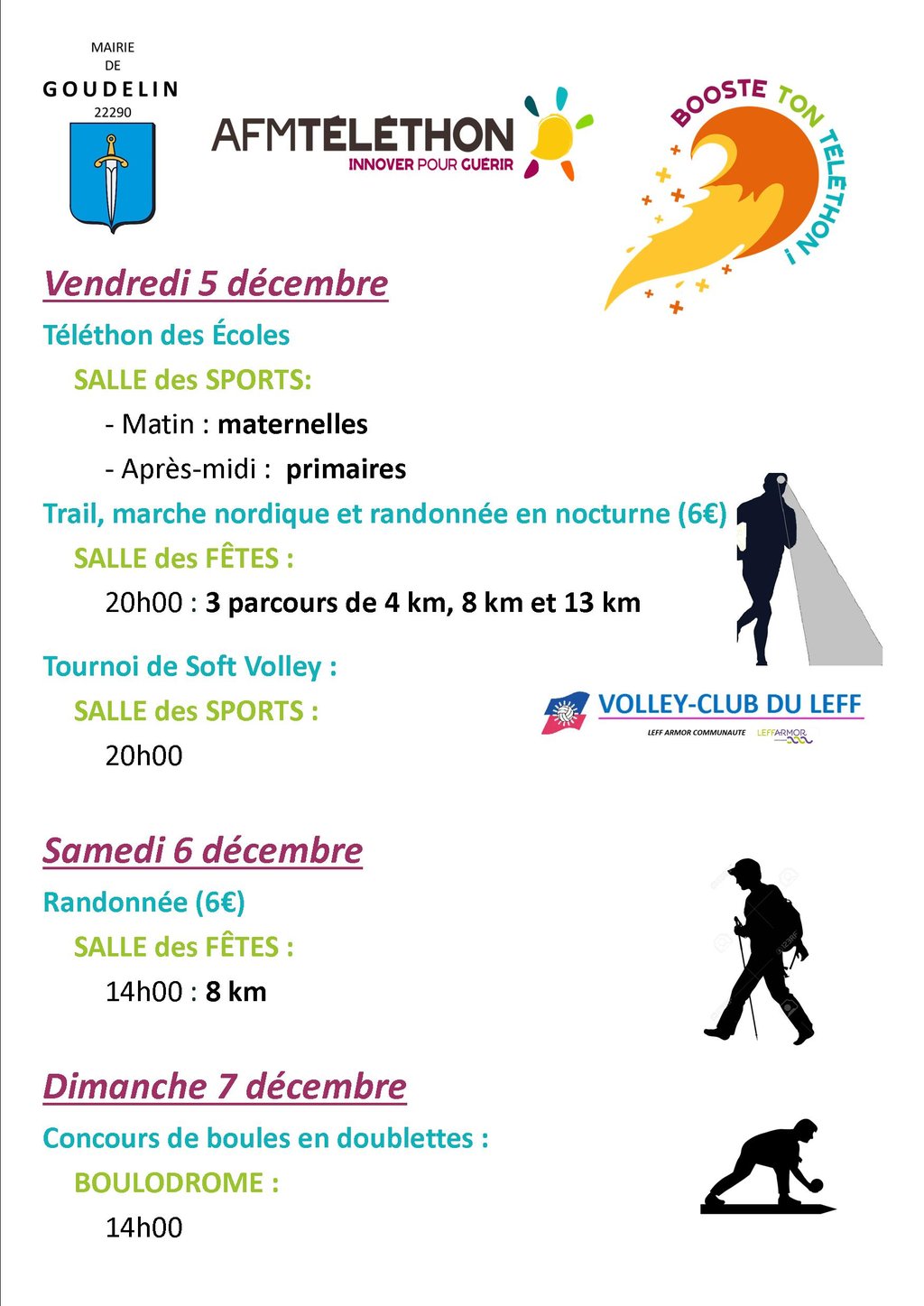 - Téléthon des écoles - salle des sports - matin : maternelles - après-midi : primaires,