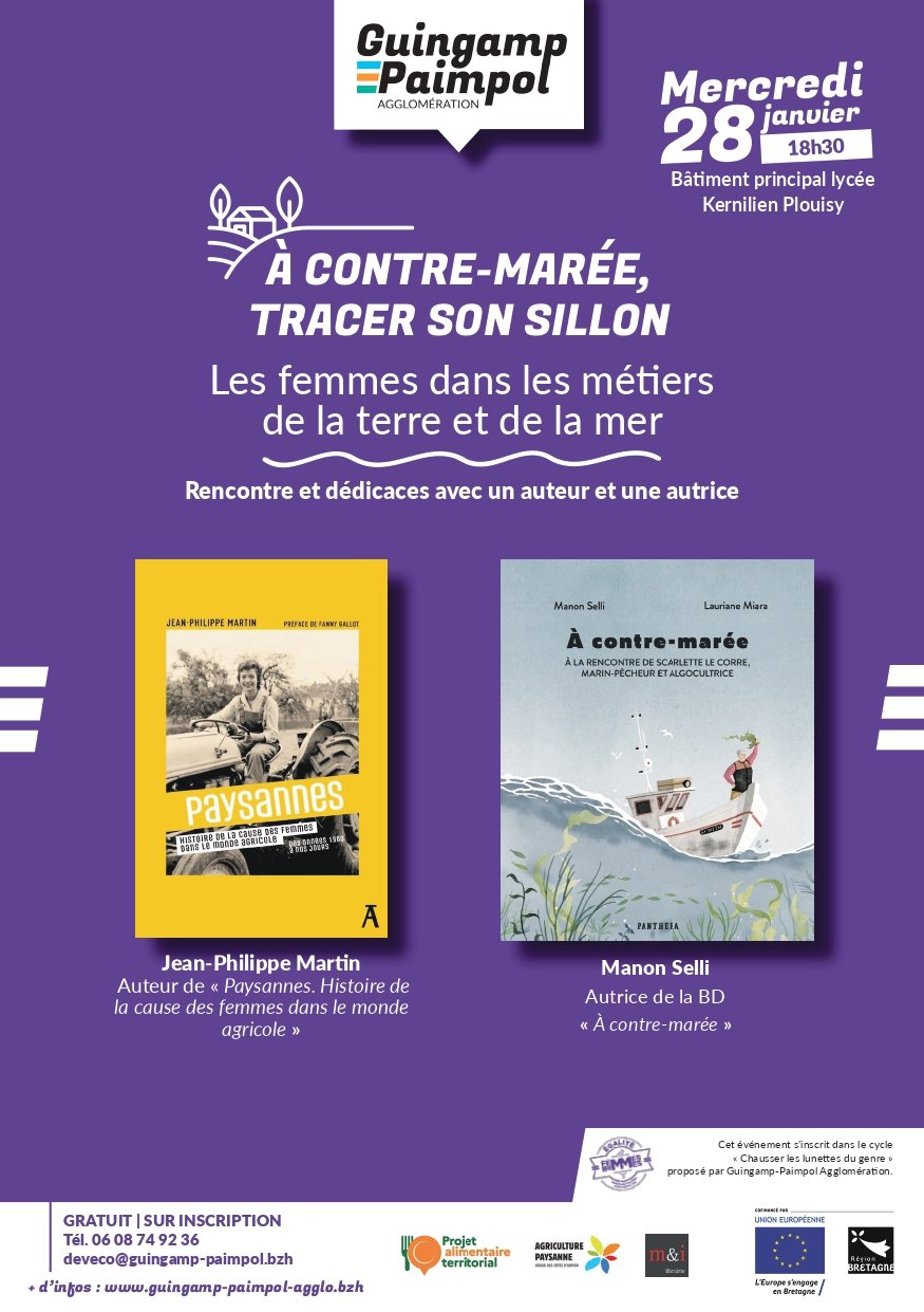 Mercredi 28 janvier à 18h30, lycée professionnel Kernilien à Plouisy : "À contre-marée, tracer son sillon : les femmes dans les métiers de la terre et de la mer" : rencontre organisée par Guingamp Paimpol Agglomération, dans le cadre du projet “Chausser les lunettes du Genre"